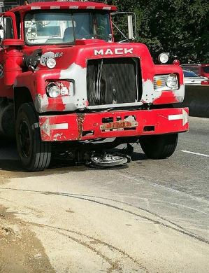 El joven que murió en el acto al ser impactado por un camión le llamaba Asiais quedo tendido en el pavimento mientra la turba incendiaban la camioneta de dicha autoridad vial.